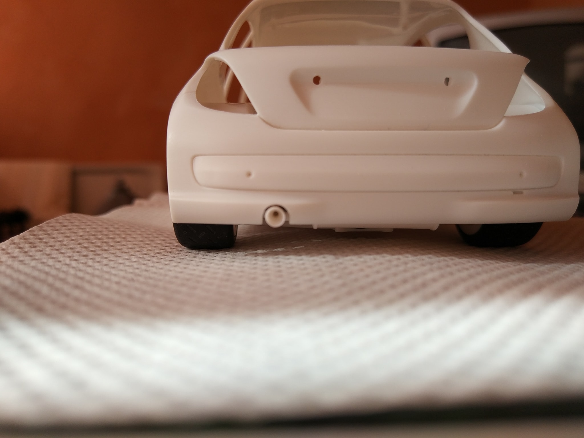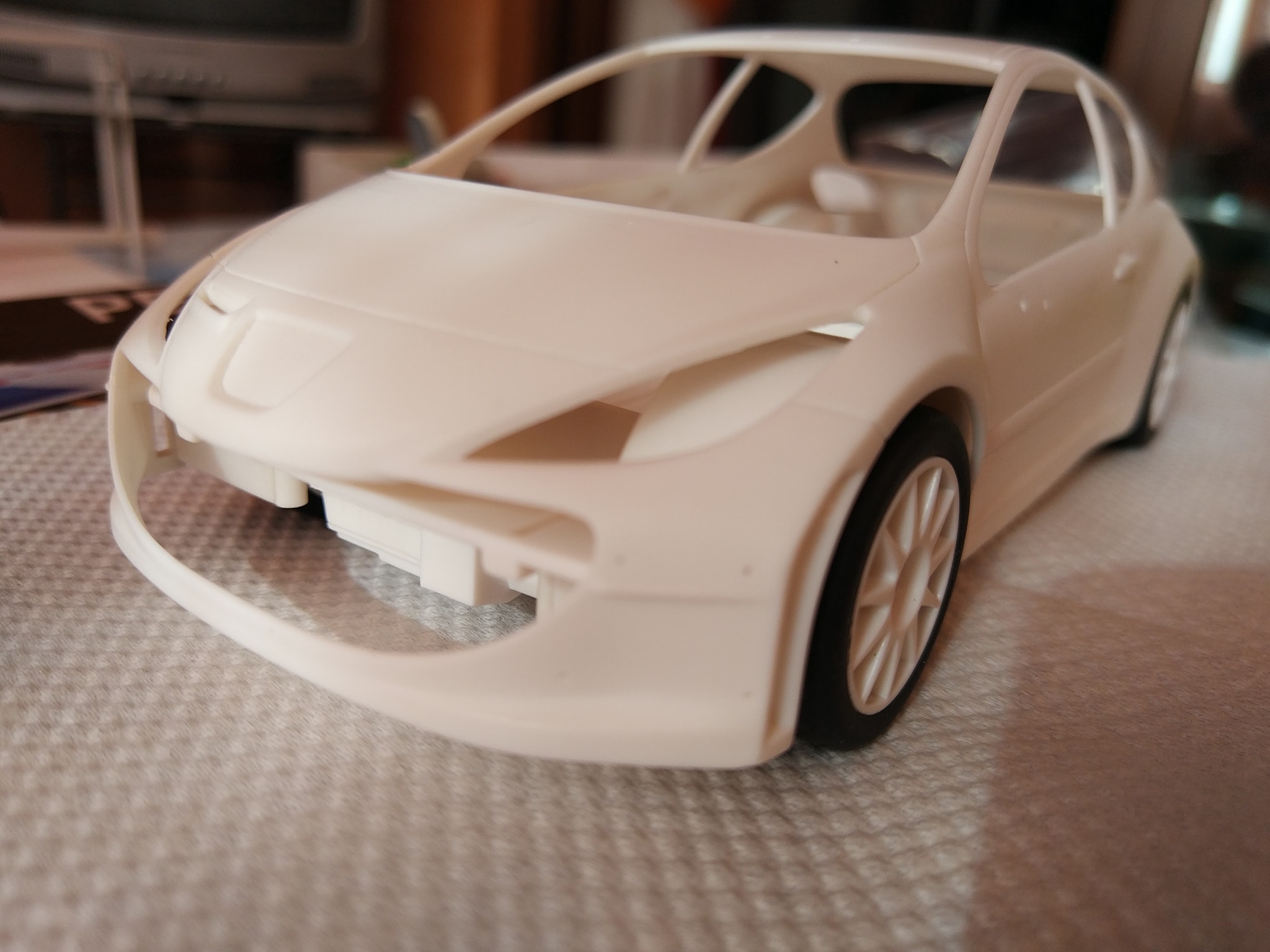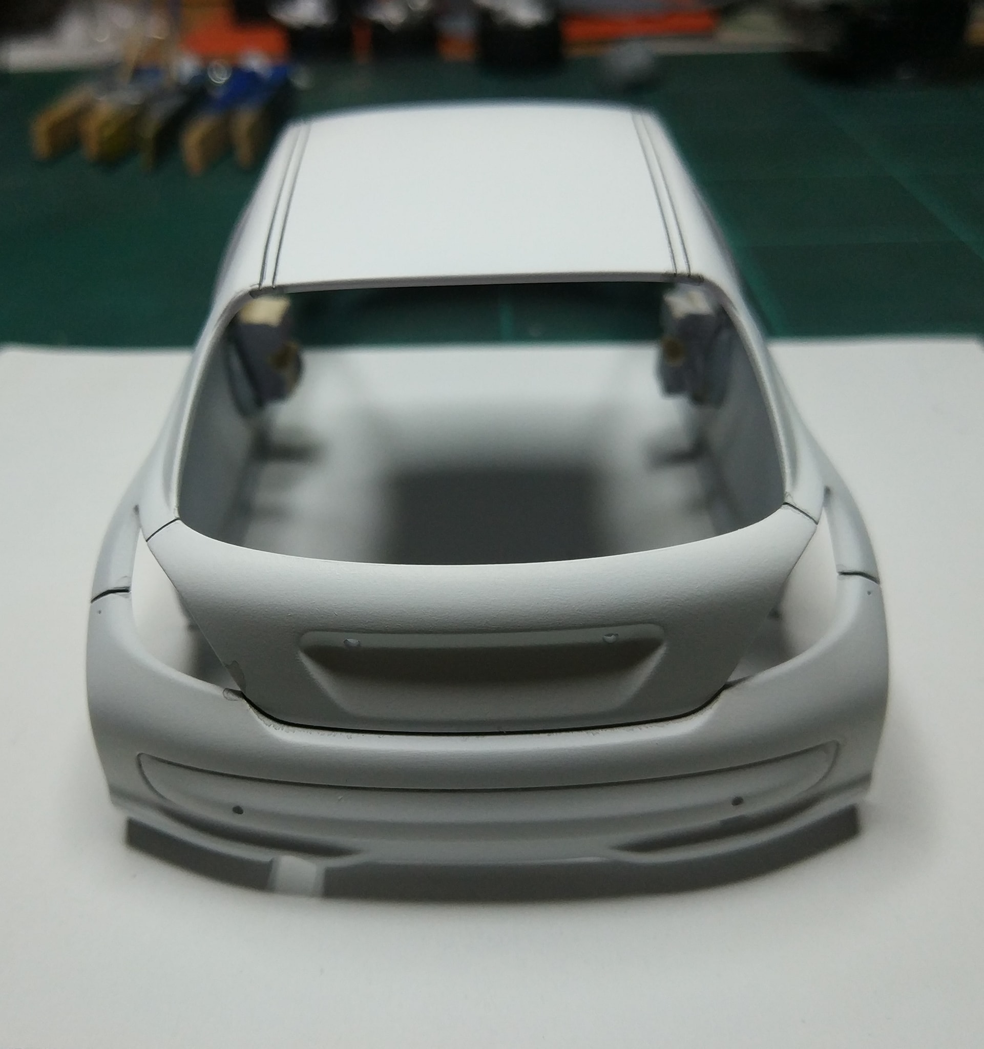 He probado el red cherry y he pintado en blanco la carrocería. También le he dado el panelado y lijado toda la carrocería.